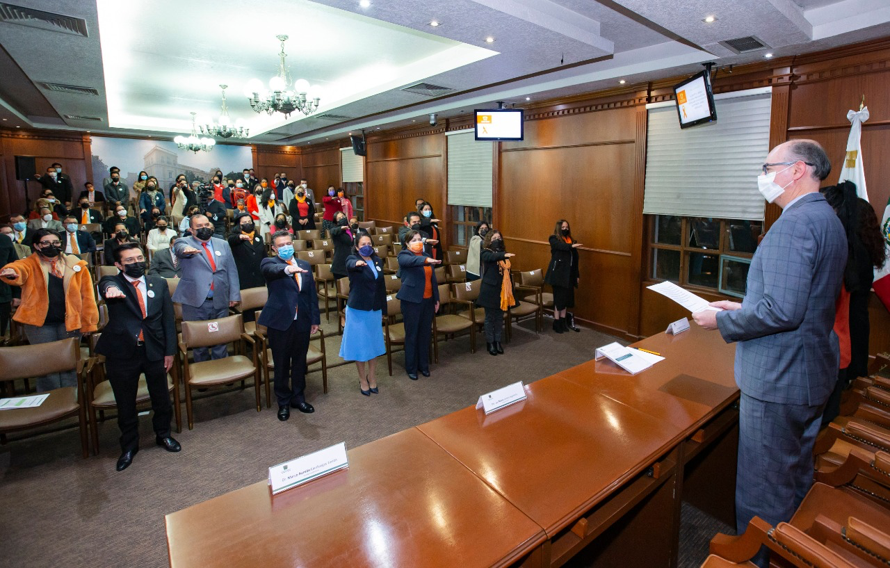 Acompañado de la coordinadora institucional de Género, Alejandra Carmona Castañeda, y el secretario de Rectoría, Marco Aurelio Cienfuegos Terrón, el rector de la Máxima Casa de Estudios mexiquense, Carlos Eduardo Barrera Díaz, tomó protesta al Comité de Género de Administración Central para la construcción de una comunidad universitaria cada vez más inclusiva en pro de la igualdad de género.