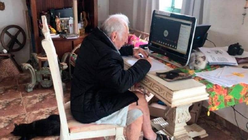 Aunque en definitiva esto se le ha complicado, el anhelo de cumplir su sueño lo ha impulsado a adaptarse rápidamente a las clases a distancia, con ayuda de su nieta, quien diariamente lo apoya para desenvolverse cada vez mejor en sus clases a distancia.