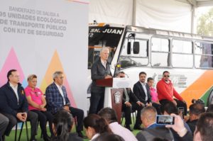 En el banderazo de salida de 95 unidades ecológicas de transporte público, con equipo de seguridad y que operarán en municipios de la Región de las Pirámides, el mandatario estatal aseguró que esta profesionalización, dirigida a conductoras y conductores, permitirá continuar mejorando al sector, al tiempo de dar mayor certeza a las personas que utilizan este medio para trasladarse.
