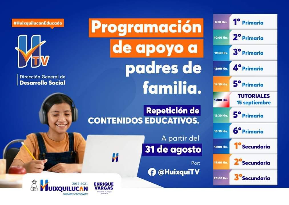 · A través de la página de Facebook Huixqui TV se realizará la retransmisión de clases de primaria y secundaria