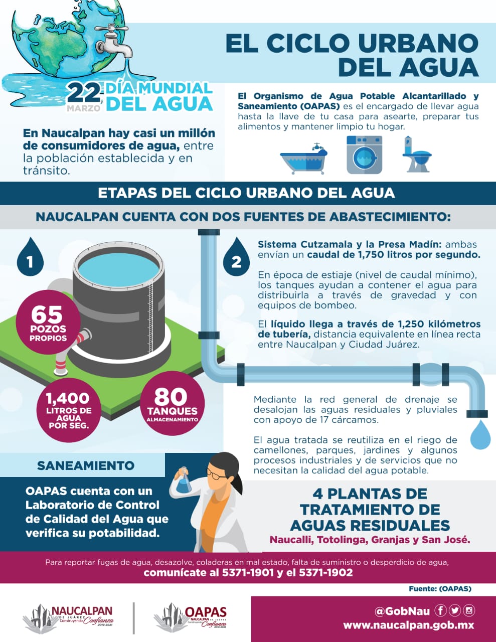 En el marco del Día Mundial del Agua, Ricardo Gudiño Morales, director del Organismo de Agua Potable, Alcantarillado y Saneamiento (OAPAS), dio a conocer que en Naucalpan se apuesta por la tecnología para eficientar el servicio.