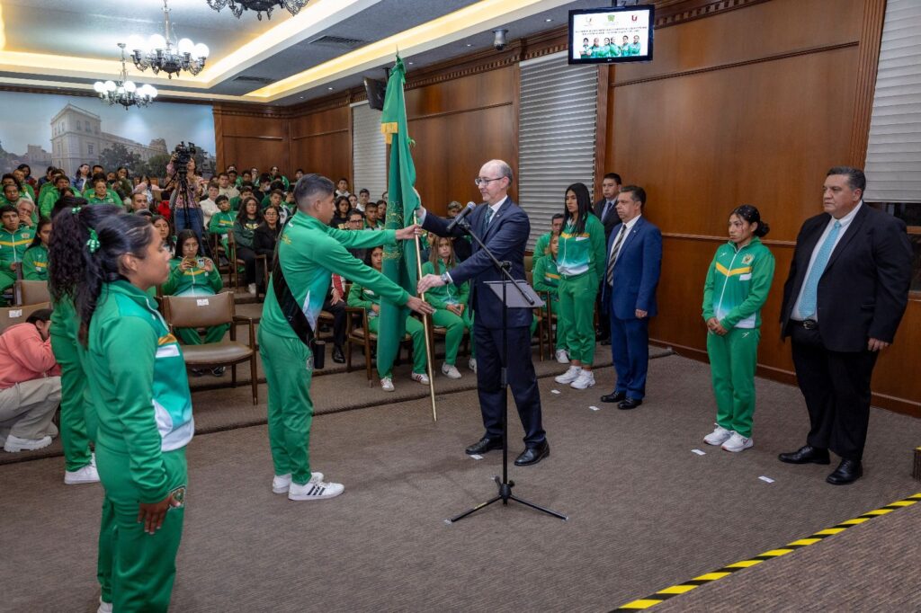 La Universidad Autónoma del Estado de México (UAEMéx) abanderó a la delegación de deportistas que representarán a la institución en los III FISU América Games 2024, a celebrarse en Cali, Colombia. Durante la ceremonia, el rector Carlos Eduardo Barrera Díaz instó a los atletas a representar con honor los símbolos patrios y universitarios, destacando la importancia de llevar con orgullo los colores verde y oro de la universidad.