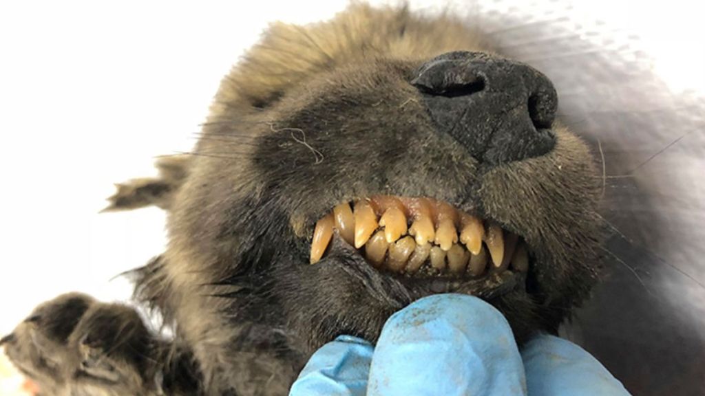 Las fotos de un cachorro de perro o lobo de 18 mil años descubierto en Siberia ha intrigado a científicos, mismos que argumentan que el cachorro macho tiene dientes de leche y murió dos meses antes de quedar congelado.