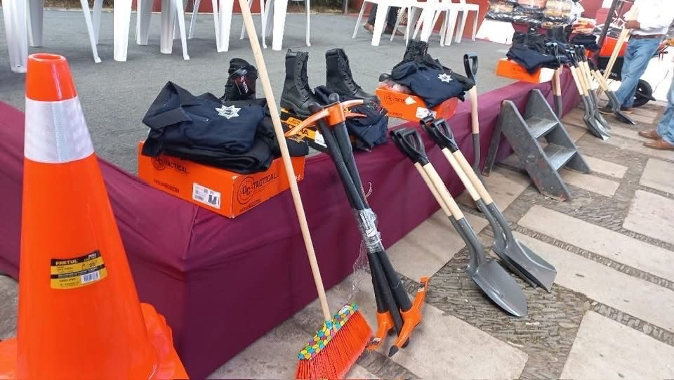 Tlatlaya. Méx.- El Presidente Municipal de Tlatlaya, Crisóforo Hernández Mena encabezo la entrega de 3 patrullas, uniformes y equipos de trabajo para el cuerpo de Seguridad Pública Municipal, así como uniformes y herramientas para el Área de Protección Civil y uniformes para los trabajadores del servicio de limpia.