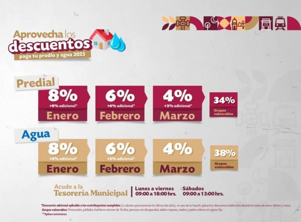 El Ayuntamiento, comprometido con el bienestar económico de las familias, implementó una campaña de descuentos aprobada en la primera sesión de Cabildo, realizada el 1 de enero. Los beneficios son los siguientes: