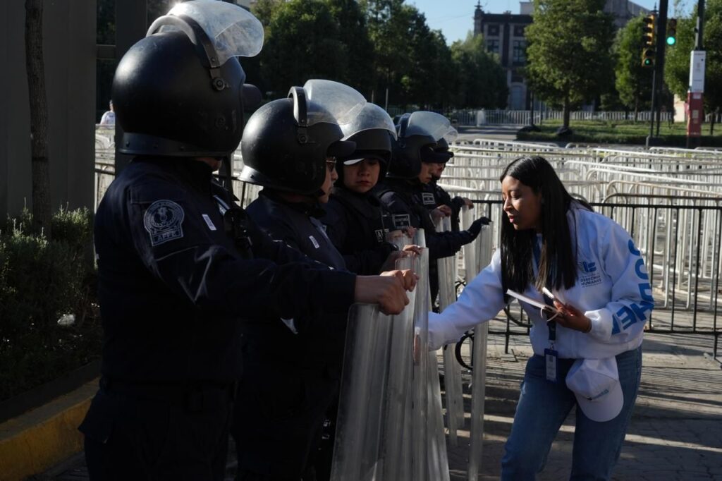 El personal de la CODHEM verificó que las y los elementos de seguridad no portaran armas o instrumentos prohibidos y que su actuación se ajustara al Protocolo de Actuación Policial para la Seguridad y Atención de Manifestaciones en Pro de los Derechos de las Mujeres.
