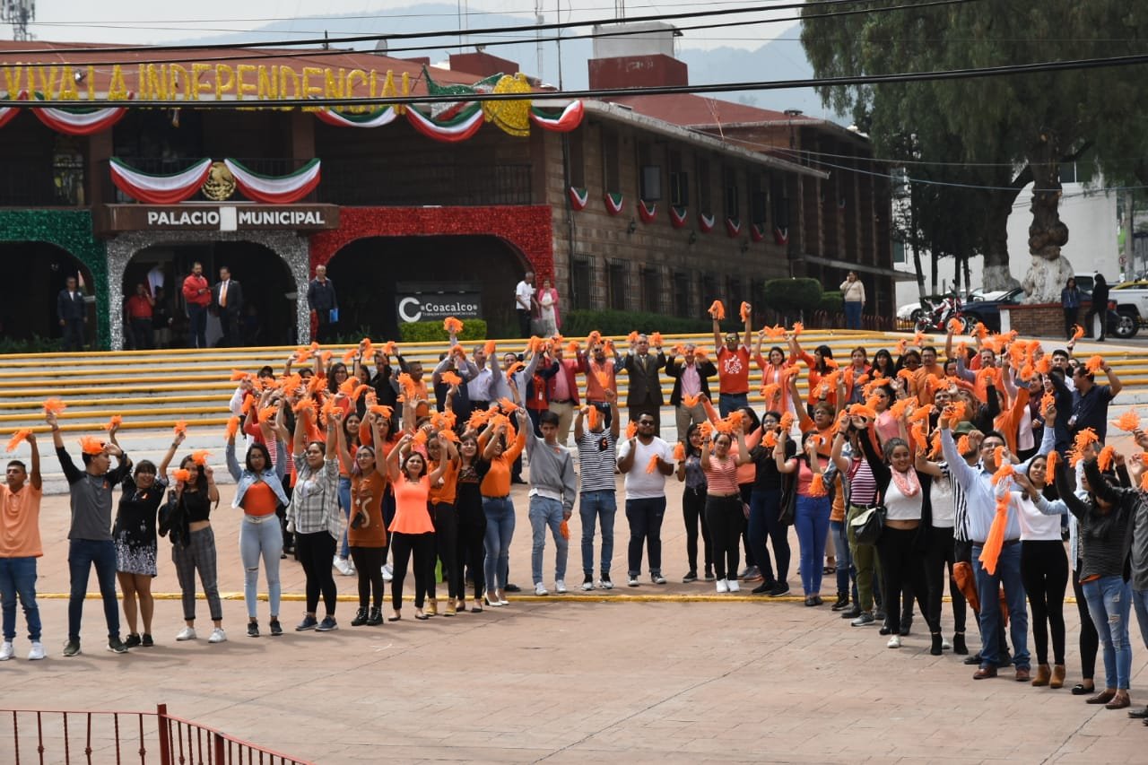 Como parte de la conmemoración del “Día Naranja”, la Presidenta del Sistema Municipal DIF, Patricia Jurado, encabezó una caminata y la formación de un moño humano, como un llamado a la NO violencia en contra de la mujer.