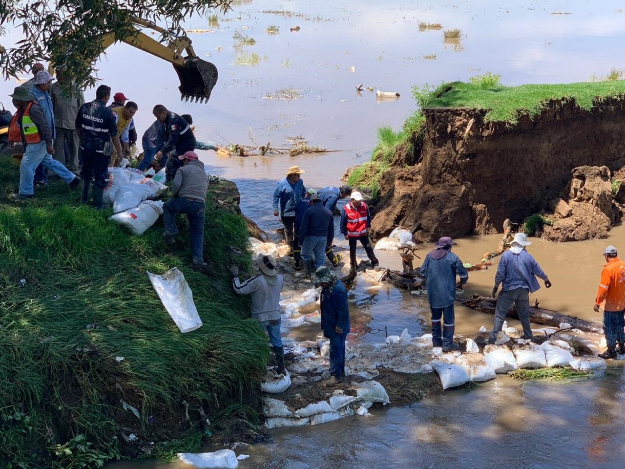 Gracias al trabajo coordinado entre el Grupo Tláloc, de la CAEM, la Comisión Nacional del Agua (Conagua), así como personal de Protección Civil de Xonacatlán y Otzolotepec, se contuvo el flujo de agua que escurría hacia los campos de cultivo.