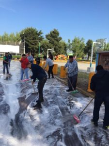 *Metepec, México; 8 de abril de 2020.* La unidad y corresponsabilidad de acciones para combatir la propagación del COIVID -19, quedó de manifiesto una vez más en Metepec, cuando la mañana de este miércoles tianguistas que se ubican en la explanada del mercado de Izcalli Cuauhtémoc V y autoridades municipales, realizaron una jornada de limpieza para la seguridad de los asistentes.