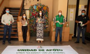 La empresa socialmente responsable, representada en un acto simbólico por el Gerente de zona en Toluca, Enrique Cadena, contribuye a través del programa «Por México, por todos», con el gobierno de Metepec a que entegó el material desinfectante para ser distribuido y aplicado en las comunidades a fin de mitigar los efectos de la pandemia.