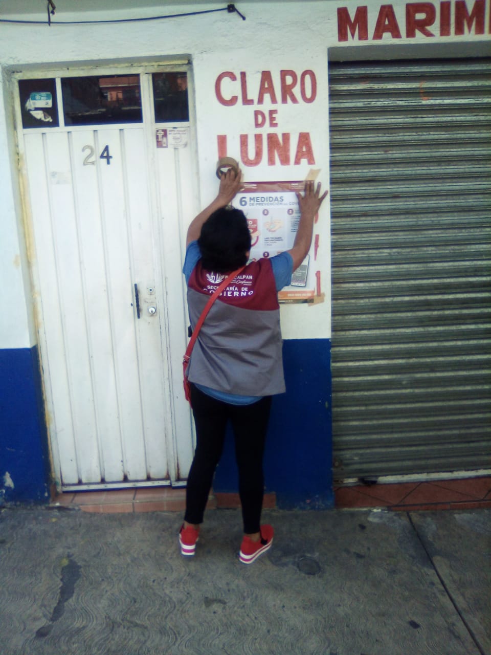 El Gobierno Municipal lleva a cabo volanteo y colocación de carteles informativos para dar a conocer a la ciudadanía las medidas sanitarias de prevención durante la Jornada Nacional de Sana Distancia por el COVID-19.