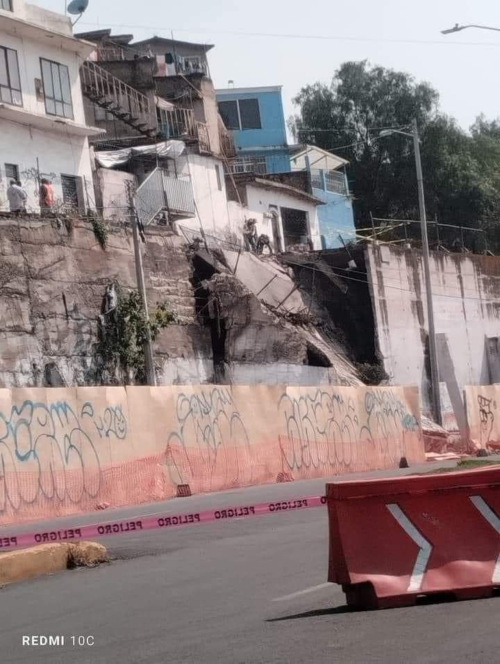 En la colonia San Pedro Barrientos, un muro de contención de diez metros fue derribado de manera controlada el pasado 6 de noviembre, ante el riesgo inminente de un derrumbe. Ubicado al borde de una barranca colapsada, el muro representaba una amenaza directa para las viviendas cercanas, ya que los residentes lo describen como una construcción precaria, similar a un “castillo de naipes.”