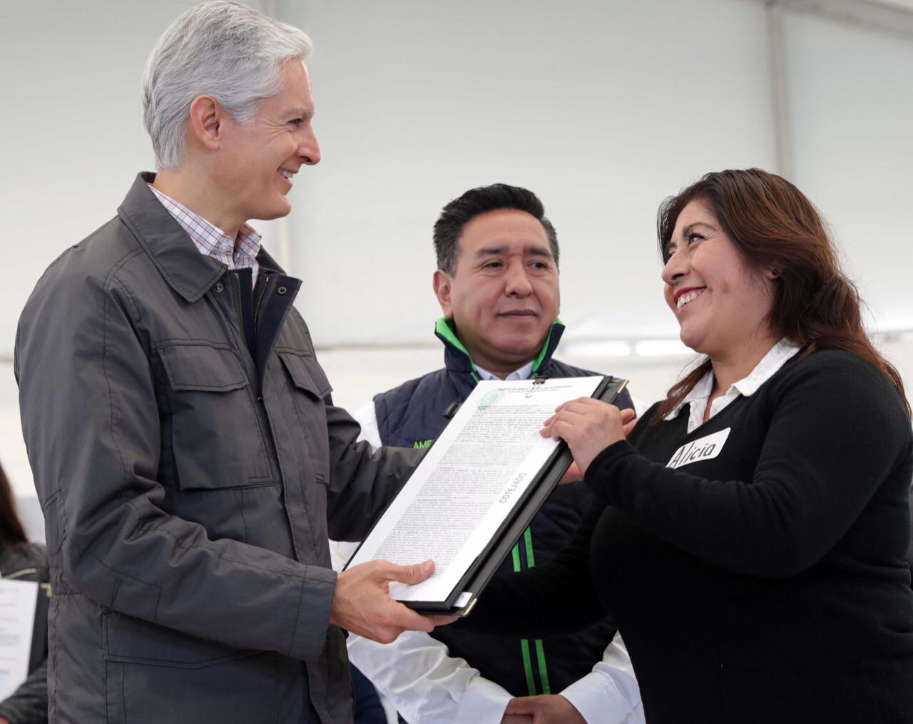 Durante la entrega de títulos de propiedad y posesión, Alfredo Del Mazo reiteró también que en los últimos dos años en la entidad se logró disminuir los índices de pobreza en un 5 por ciento.