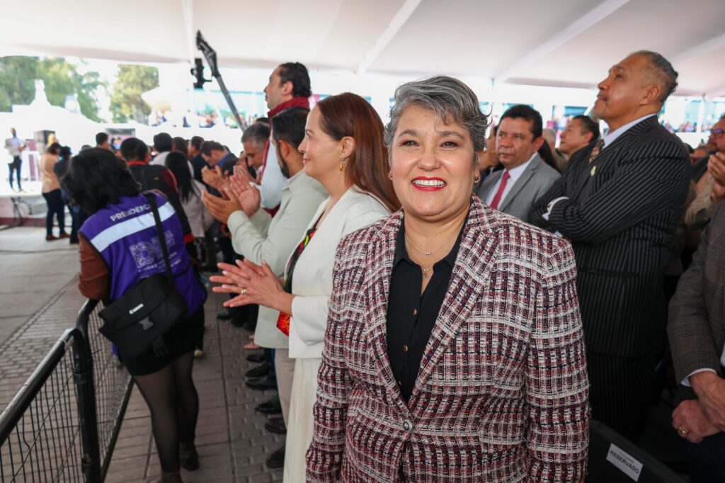 La líder estatal reconoció además el mensaje de la gobernadora Delfina Gómez, quien resaltó el liderazgo de la presidenta de la República, Claudia Sheinbaum Pardo, como impulsora de una nueva manera de gobernar: eficiente, cercana y con principios de justicia social.