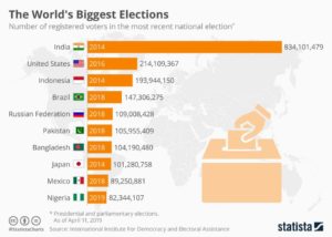 LO DE HOYElecciones más grandes en el mundo.octubre 14, 2019octubre 14, 2019P Elecciones más grandes en el mundo por número de votantes registrados. Statista. Comparte esto: Comparte en Facebook (Se abre en una ventana nueva) Facebook Compartir en X (Se abre en una ventana nueva) X Me gusta esto:Me gusta Cargando... Relacionado