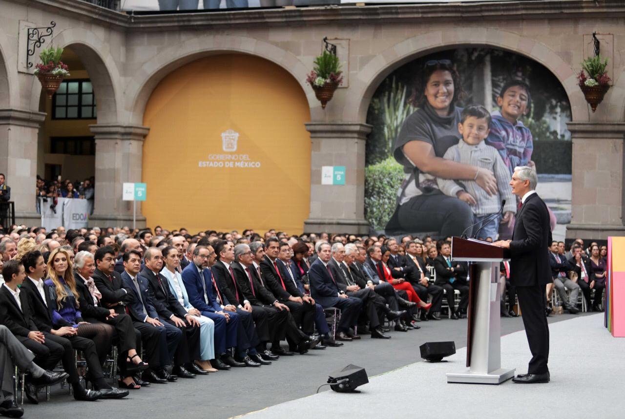 Toluca, Estado de México, 24 de septiembre de 2019. Al rendir su Segundo Informe de Resultados, el Gobernador Alfredo Del Mazo Maza, destacó que datos del Consejo Nacional de Evaluación de la Política de Desarrollo Social (Coneval), señalan que entre 2016 y 2018, en el Estado de México 683 mil personas dejaron la condición de pobreza.