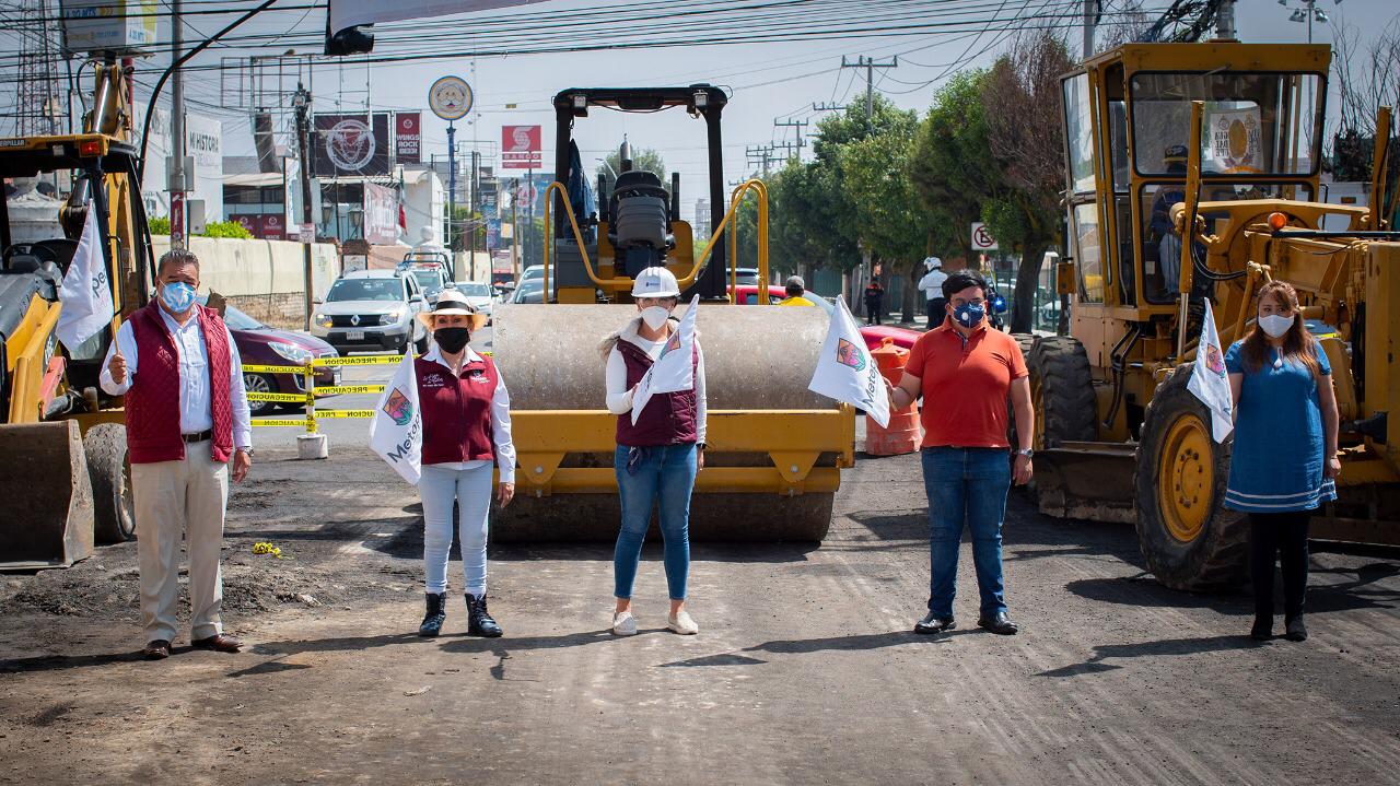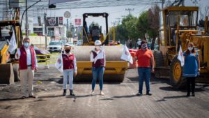 *Metepec, México; 13 de octubre de 2020.* La alcaldesa de Metepec, Gaby Gamboa Sánchez, dio el banderazo de arranque de los trabajos de pavimentación con concreto hidráulico de la avenida Leona Vicario, en el tramo de las vías Guadalupe Victoria y José María Pino Suárez.