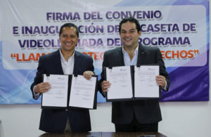 Con el compromiso de respetar, promover y proteger los Derechos Humanos, el presidente municipal de Huixquilucan, Enrique Vargas del Villar y el ombudsman del Estado de México, Jorge Olvera García, pusieron en funcionamiento la caseta de videollamada del programa “Llama y protege tus derechos”, en la cual las personas interesadas podrán solicitar orientación para iniciar alguna queja, o información sobre los derechos humanos, cursos y talleres que imparte la Comisión de Derechos Humanos del Estado de México.