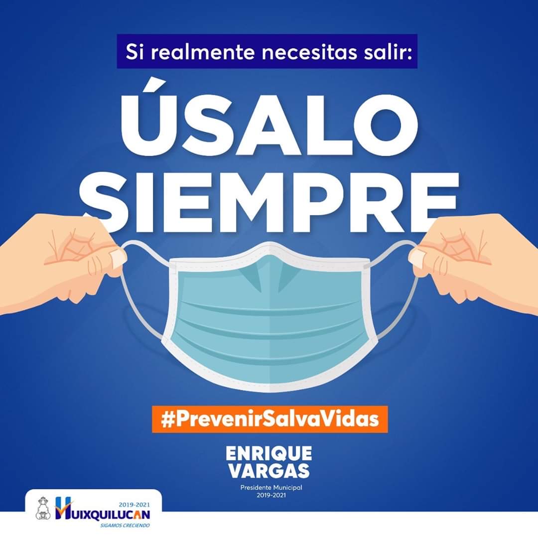 El presidente municipal, Enrique Vargas del Villar, reiteró a la ciudadanía huixquiluquense a mantenerse en casa, y si es necesario salir a comprar comida, medicamentos u otros artículos de primera necesidad, lo hagan debidamente protegidos con un cubrebocas que pueden realizar en casa, si tienen guantes los usen, lavar constantemente las manos, el uso de gel antibacterial y con ello evitar contagiarse del virus.