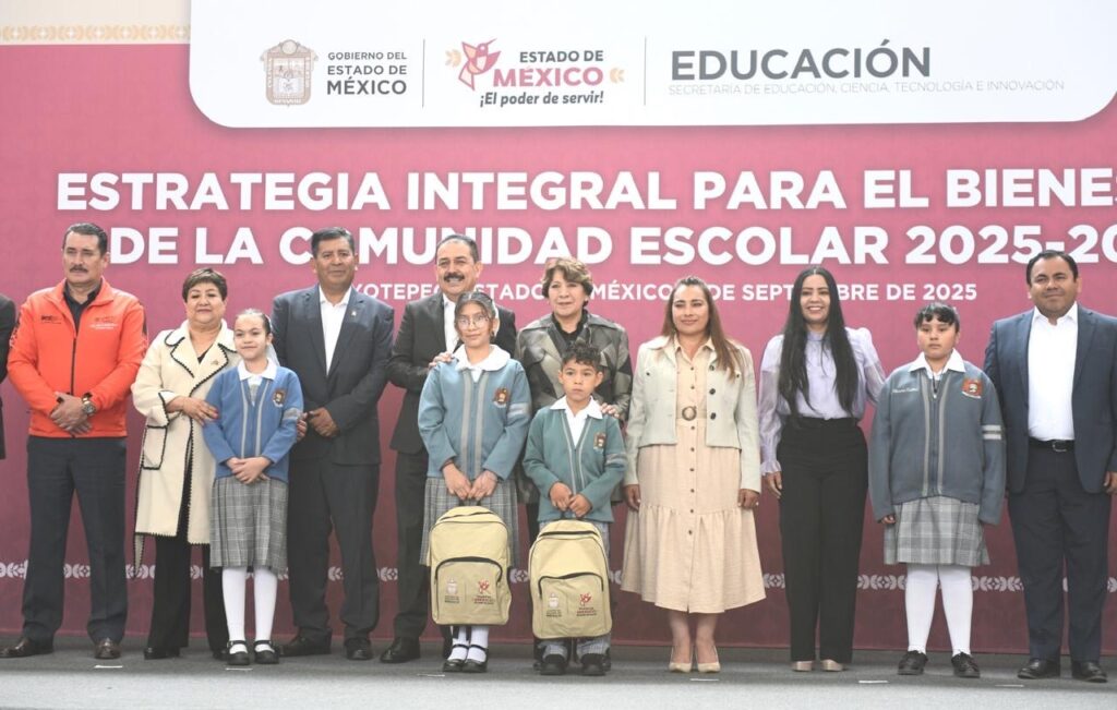 El líder magisterial también acompañó a la Gobernadora Delfina Gómez Álvarez en la Escuela Primaria Paulino Martínez, en Coyotepec, durante la puesta en marcha de la Estrategia Integral para el Bienestar de la Comunidad Escolar 2025-2026, que contempló la entrega de útiles, mobiliario e infraestructura a diversos planteles de la región.