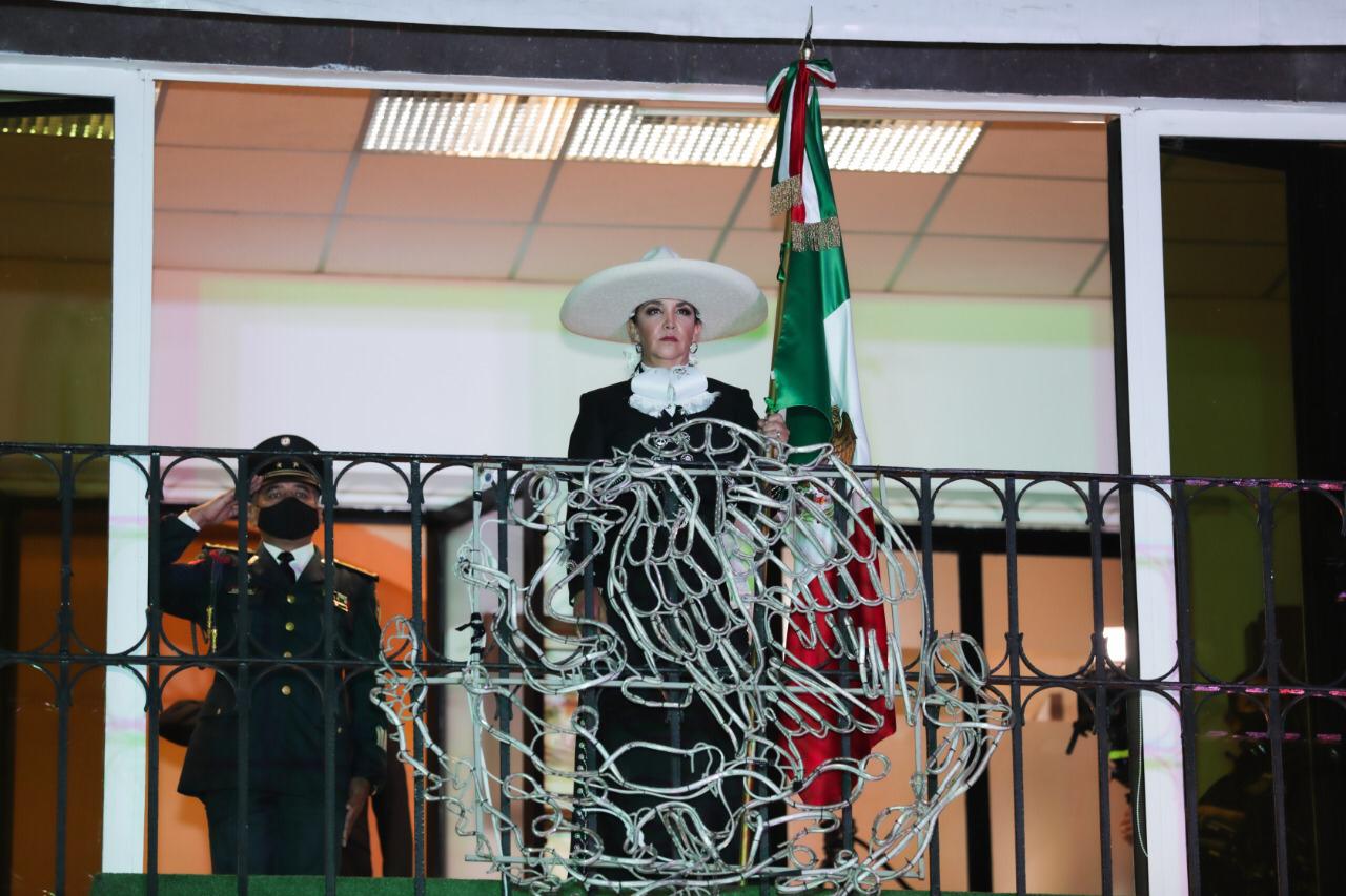 La noche del martes, en punto de las 11:00 horas, apareció en el balcón del edificio del Ayuntamiento con un impecable traje de charro color negro, la alcaldesa Gaby Gamboa Sánchez, quien recibió el lábaro patrio de la escolta de la 22ª zona militar y el Secretario del Ayuntamiento, Raymundo Guzmán Corroviñas, una vez en el estrado principal, ondeó la bandera de México y tocó la campana, rememorando así el grito de Independencia.