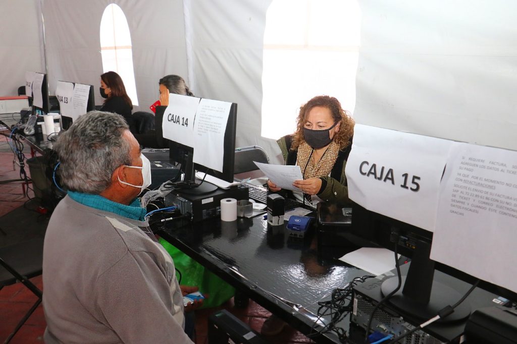 De esta manera, la Tesorería Municipal pone a disposición de la población de lunes a viernes de 9:00 a 18:00 horas y sábados de 9:00 a 13:00 horas, las oficinas de esta dependencia ubicadas en la plaza Fray Andrés de Castro, Edificio “A” en los Portales (atrás de la Iglesia de la Santa Veracruz); la carpa dispuesta en la explanada de la Plaza Fray Andrés de Castro junto a la Capilla Exenta (atrás del Palacio Municipal); la sede del Organismo Agua y Saneamiento en calle Primero de Mayo N° 1707, Zona Industrial Toluca; Francisco Murguía N° 100 esquina con Benito Juárez, colonia Francisco Murguía; calle 23 de Septiembre N° 529, colonia Morelos primera sección, o bien en la Plaza Comercial Sauces, ubicada en Paseo Abedules esquina con Paseo de los Sauces.