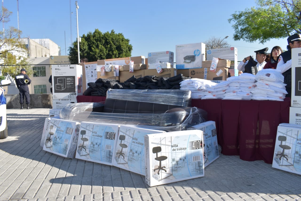 La inversión fue de más de 2 millones de pesos, como parte del recurso estatal para la Mitigación de la Alerta de Violencia de Género, monto con el que se adquirieron 2 vehículos tipo sedán para la Policía de Género, una camioneta tipo pick up para la Célula de Búsqueda, 80 mil impresos informativos que se distribuirán en las comunidades, 400 textiles, 10 sillas secretariales, 4 escritorios, 4 archiveros, 5 computadoras de alto rendimiento y 3 de escritorio, entre otros.