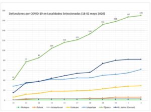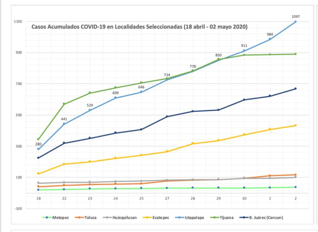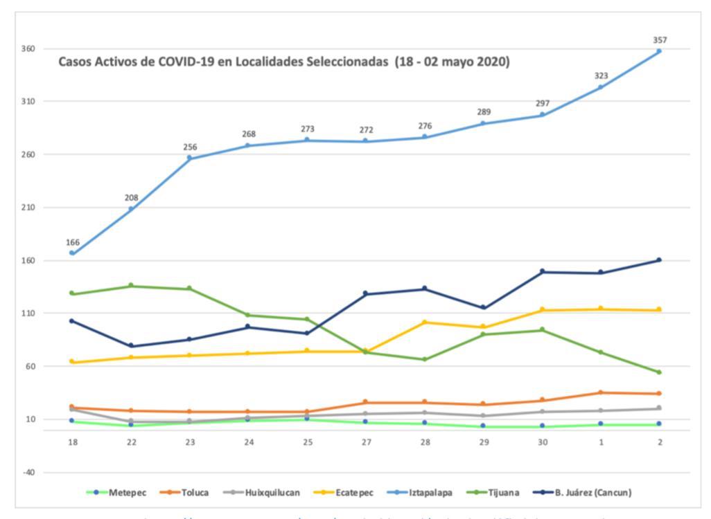 Cabe destacar que las acciones del ayuntamiento para prevenir la expansión de la pandemia están vigentes con un ejército de servidores públicos que realizan labores esenciales con equipo especializado. _Fuente: Sistema de información Geográfica de la Universidad Nacional Autónoma de México, UNAM._