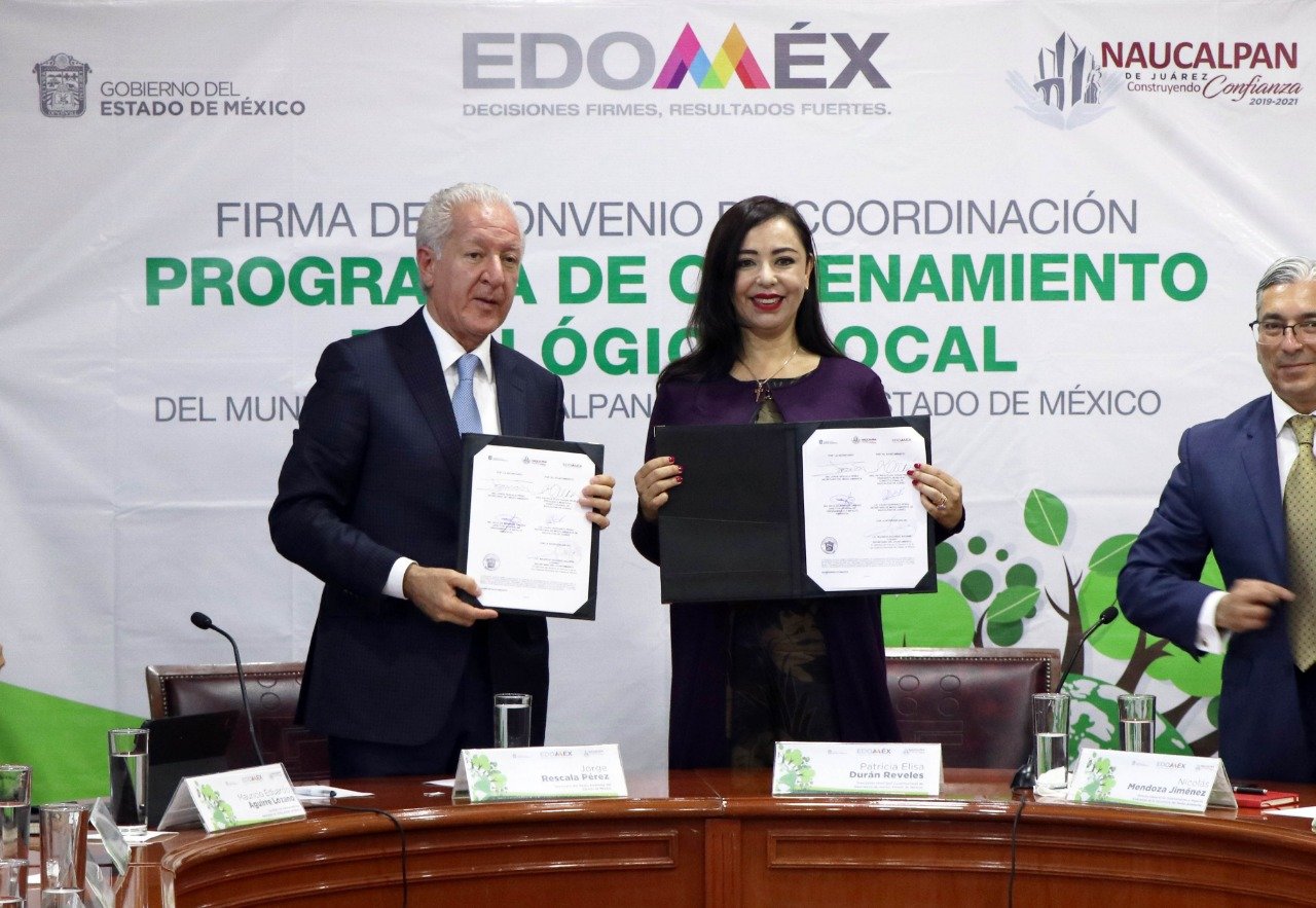 ‪El Convenio fue signado por el titular de la Secretaría del Medio Ambiente del Gobierno del Estado de México, Jorge Rescala Pérez, y la Presidenta municipal de Naucalpan, Patricia Elisa Durán Reveles.