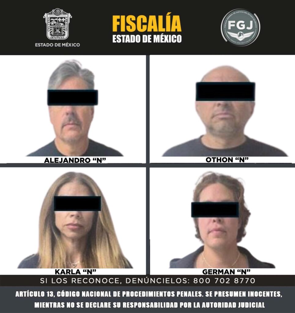 Atizapán de Zaragoza, Estado de México, 15 de agosto de 2025. – La Fiscalía General de Justicia del Estado de México (FGJEM) cumplimentó órdenes de aprehensión contra Alejandro Germán “N”, Othón “N”, Karla Alejandra “N” y Germán “N”, investigados por su probable participación en el delito de homicidio calificado en grado de tentativa.