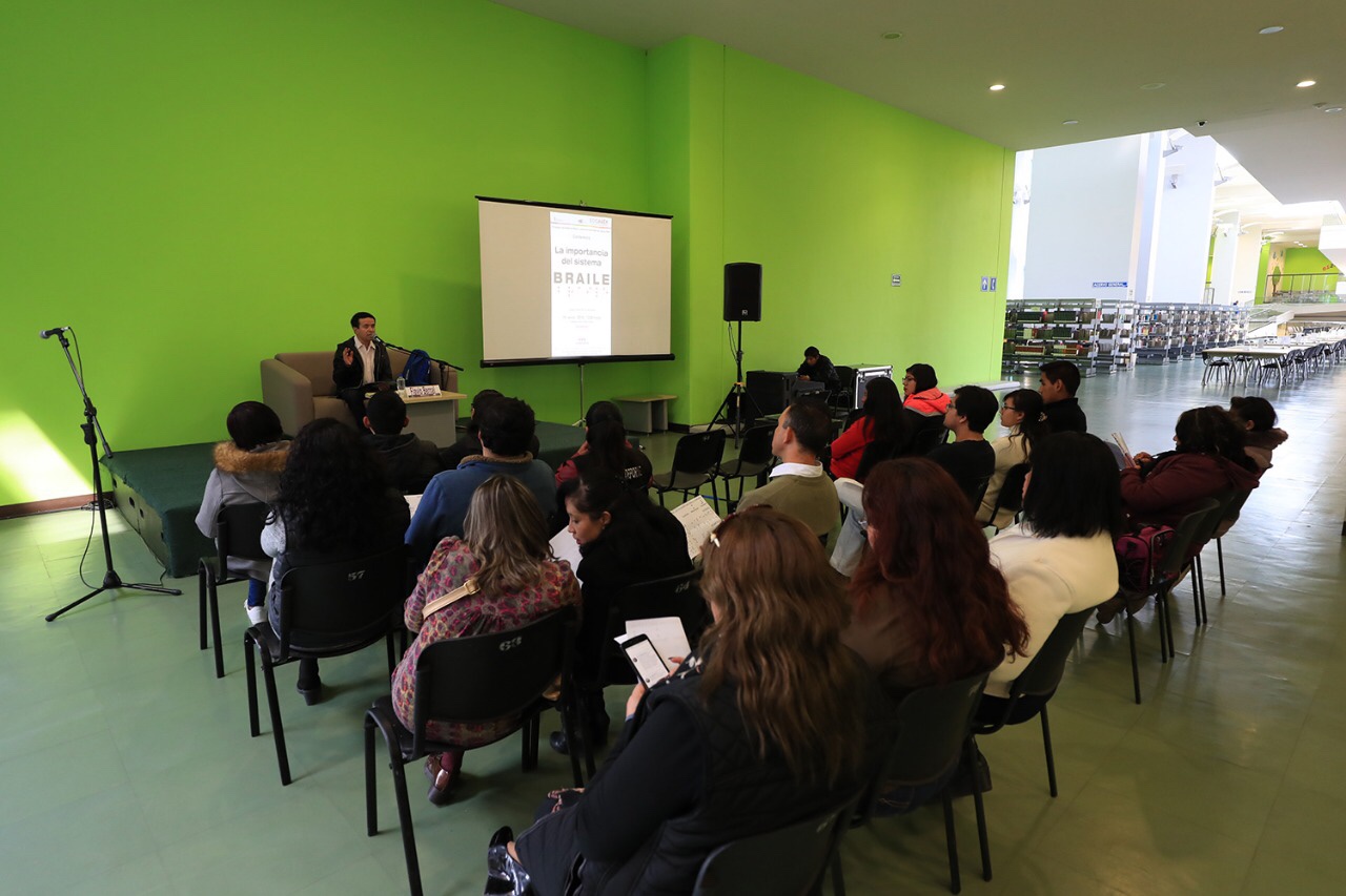 En la conferencia, el Mtro. Flavio Bernal Herrera, licenciado en Psicología de la Facultad de Estudios Superiores (FES) Zaragoza de la Universidad Nacional Autónoma de México (UNAM), expuso en qué consiste el sistema braille, las herramientas y el proceso para traducir textos del papel al lenguaje que se realiza con punzón y regleta, lo que permite acceder a materiales educativos y de literatura en general a las personas con discapacidad.
