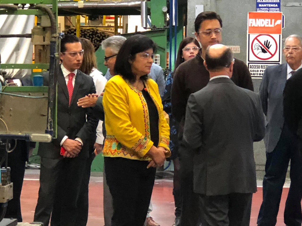 Tlalnepantla, Estado de México, 29 de enero de 2019. La Secretaria del Trabajo, Martha Hilda González Calderón, realizó un recorrido a la Fábrica Nacional de Lijas, Fandeli, donde afirmó que en el Estado de México se genera confianza y certidumbre para los inversionistas.