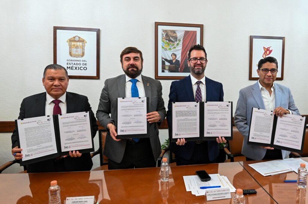 El primer convenio fue suscrito entre el Instituto Nacional del Suelo Sustentable (INSUS) y el Instituto Mexiquense de la Vivienda Social (Imevis), con el propósito de identificar zonas prioritarias, determinar usos de suelo, elaborar padrones de beneficiarios y coadyuvar en la entrega de documentos inscritos en el Registro Público de la Propiedad.