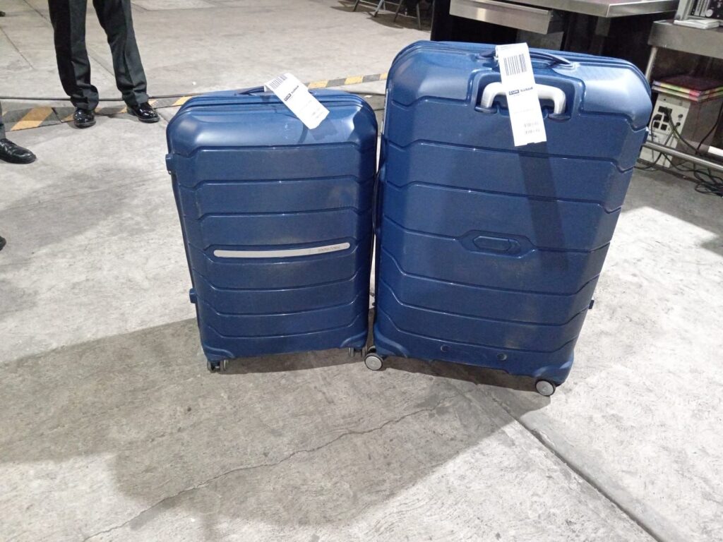 Durante un operativo de prevención del delito, y con la debida autorización, guardias nacionales, apoyados por un binomio canino, realizaban inspecciones preventivas en el área de documentación de equipaje. Fue entonces cuando el can se mostró interesado en dos maletas con características y peso similares.