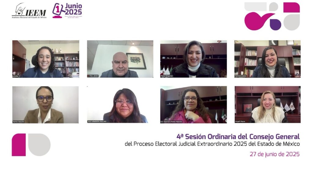 En el marco de la Cuarta Sesión Ordinaria del Consejo General del Instituto Electoral del Estado de México (IEEM), fueron aprobados diversos acuerdos relacionados con el Proceso Electoral Judicial Extraordinario 2025 en la entidad.