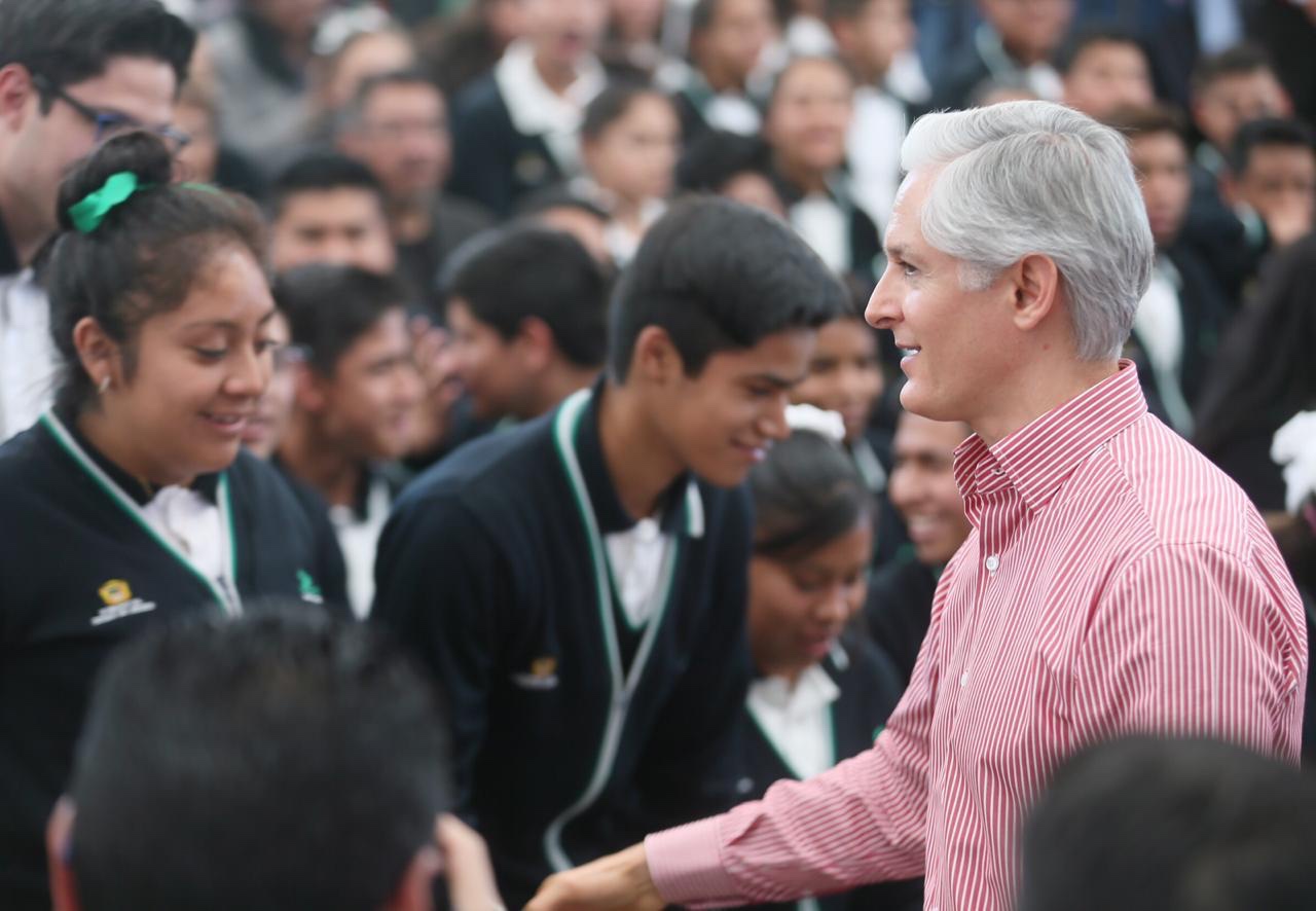 *Tultitlán, Estado de México, 27 de febrero de 2019.* El Gobernador Alfredo Del Mazo Maza informó que en colaboración con el sector empresarial, la administración estatal impulsará el sistema de Educación Dual para que este año se incremente la matrícula de estudiantes en 80 por ciento, y con ello ofrecer a los jóvenes más alternativas de encontrar un trabajo al egresar.
