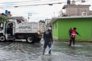 En tanto, cuadrillas del Grupo Tláloc trabajan sondeando las líneas del drenaje municipal y limpiando las calles, con dos equipos de presión succión, dos camiones cisterna, una retroexcavadora, dos camionetas de 3.5 toneladas y un camión tipo volteo.