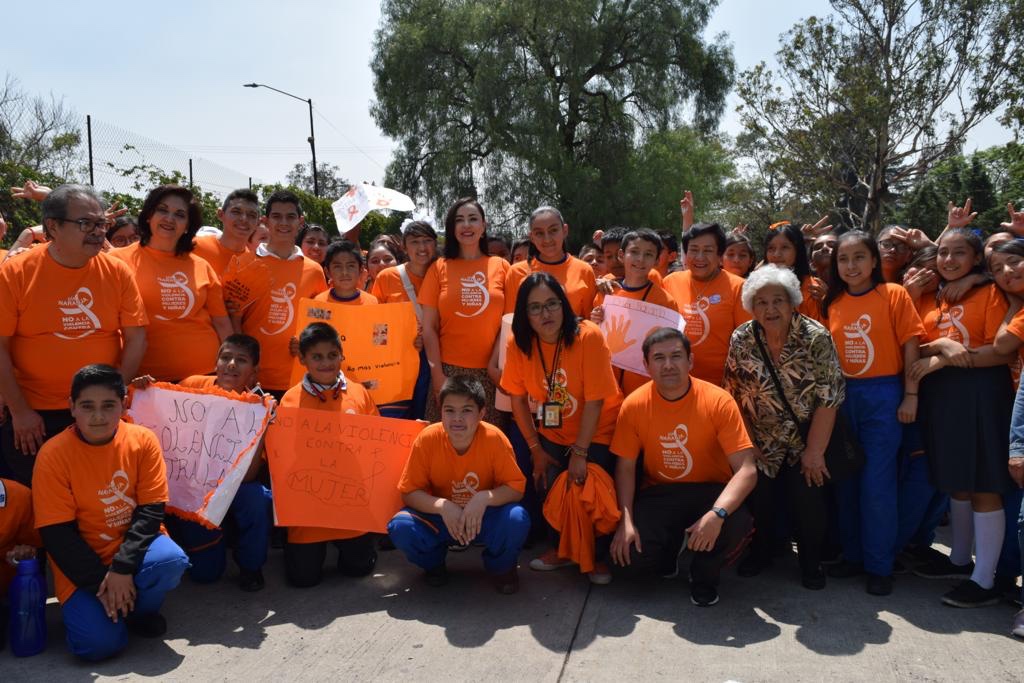 Más de 250 alumnos y maestros de esta institución acompañaron a la Alcaldesa junto con la Secretaria de las Mujeres, Adriana González Furlong, en su recorrido por Calzada de Los Remedios, San Luis Tlatilco y Avenida Adolfo López Mateos portando la playera naranja, que simboliza la lucha por la equidad de género.