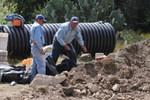 “Estamos metiendo tubería que va a durar otros 50 años y vamos a hacer conexiones al siguiente pozo, vamos a entubar toda la línea de agua, que es agua combinada de drenaje con agua pluvial, los tubos cuentan con diámetros que aguantan hasta 3 mil litros por segundo”, expuso Gregorio Ramos.