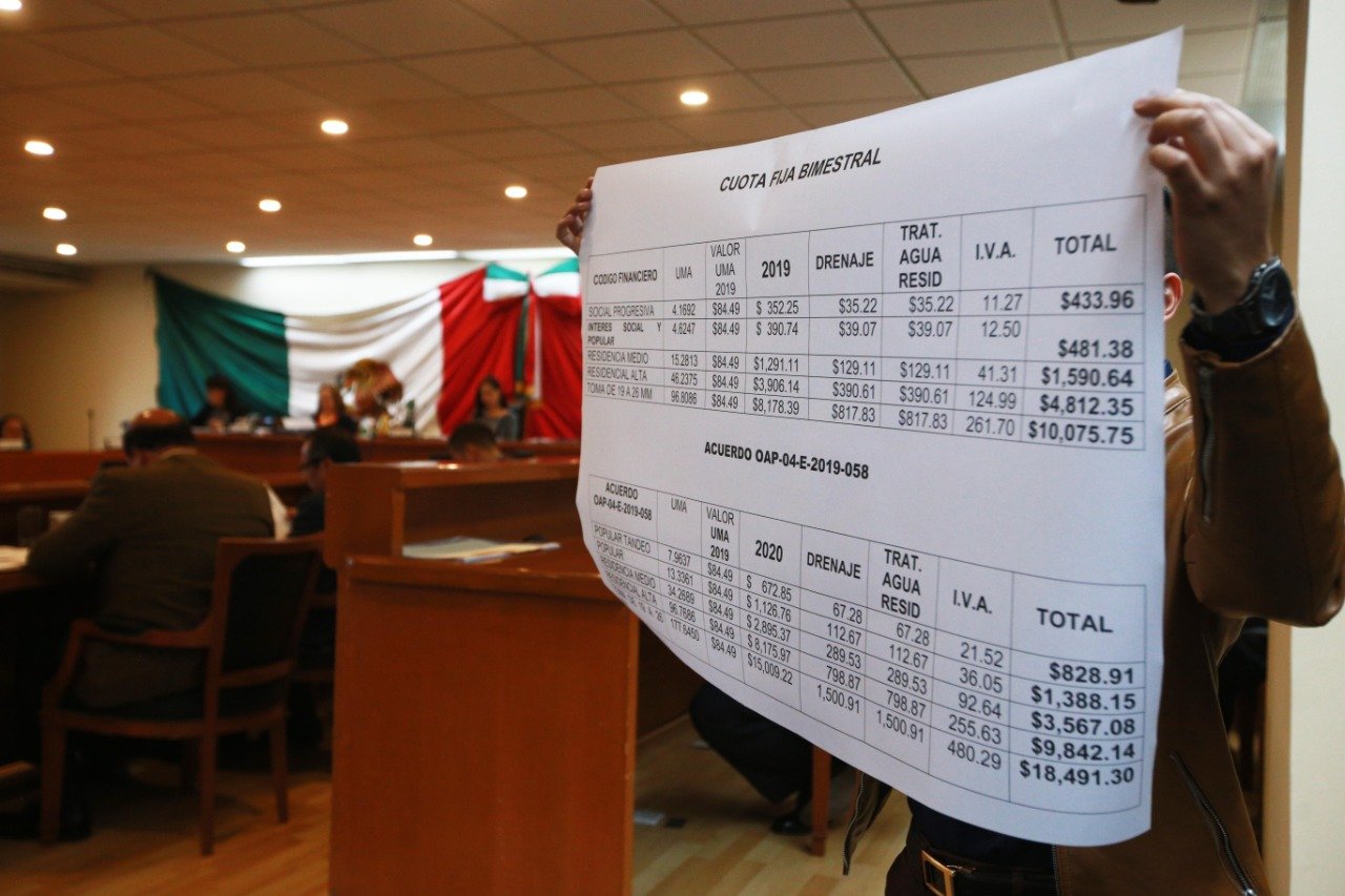 Por mayoría de votos, síndicos y regidores, así como la Presidenta Municipal, Patricia Durán Reveles, aprobaron la propuesta de aumentar en 4 por ciento las tarifas para el pago de derechos de agua potable, drenaje y alcantarillado, para el ejercicio fiscal 2020.