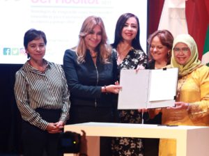 Acompañada de autoridades federales, de la Ciudad de México y de la ONU, la Alcaldesa fue testigo de honor de la Declaración de la Ciudad de México para apoyar a la campaña global Waste Wise Cities, la cual alienta a los gobiernos a comprometerse en acciones para la gestión eficaz de residuos.
