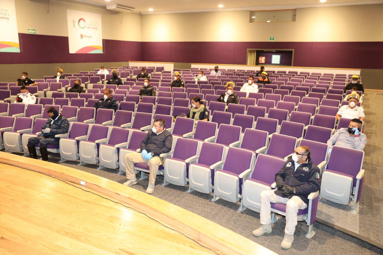 Lo anterior fue parte del curso “Manejo de COVID-19” otorgado por especialistas de epidemiología de la Secretaría de Salud estatal a personal adscrito a la Dirección de Seguridad Pública y Tránsito de Metepec, como parte de las acciones de prevención.