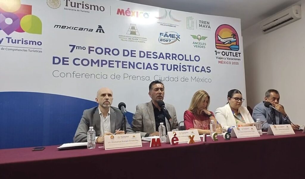 La Secretaría de Turismo del Gobierno de México lleva a cabo la presentación del 7º Foro de Desarrollo de Competencias Turísticas y la 1ª edición del Outlet de Viajes y Vacaciones México 2025, desde el espacio Punto México, ubicado en la Ciudad de México.