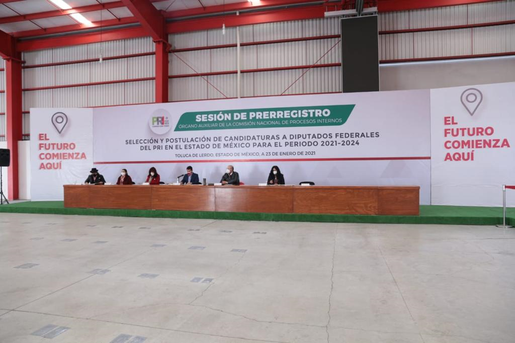 El Órgano Auxiliar de la Comisión Nacional de Procesos Internos del Partido Revolucionario Institucional (PRI) del Estado de México recibió 33 solicitudes de pre-registro de aspirantes a candidaturas a diputaciones federales propietarias por el principio de mayoría relativa de este instituto político, con ocasión del proceso electoral 2020-2021.