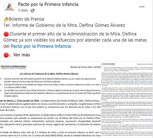 La Gobernadora del Estado de México, Mtra. Delfina Gómez Álvarez, presentó su Primer Informe de Gobierno el pasado 24 de septiembre, en el que destacó acciones clave enfocadas en el bienestar infantil, especialmente en el marco del Pacto por la Primera Infancia, un compromiso que suscribió durante su campaña electoral. Este pacto establece 10 metas prioritarias para mejorar la calidad de vida de las niñas y niños menores de seis años, abordando temas como pobreza, nutrición, lactancia, vacunación, desarrollo infantil, educación y violencia infantil.