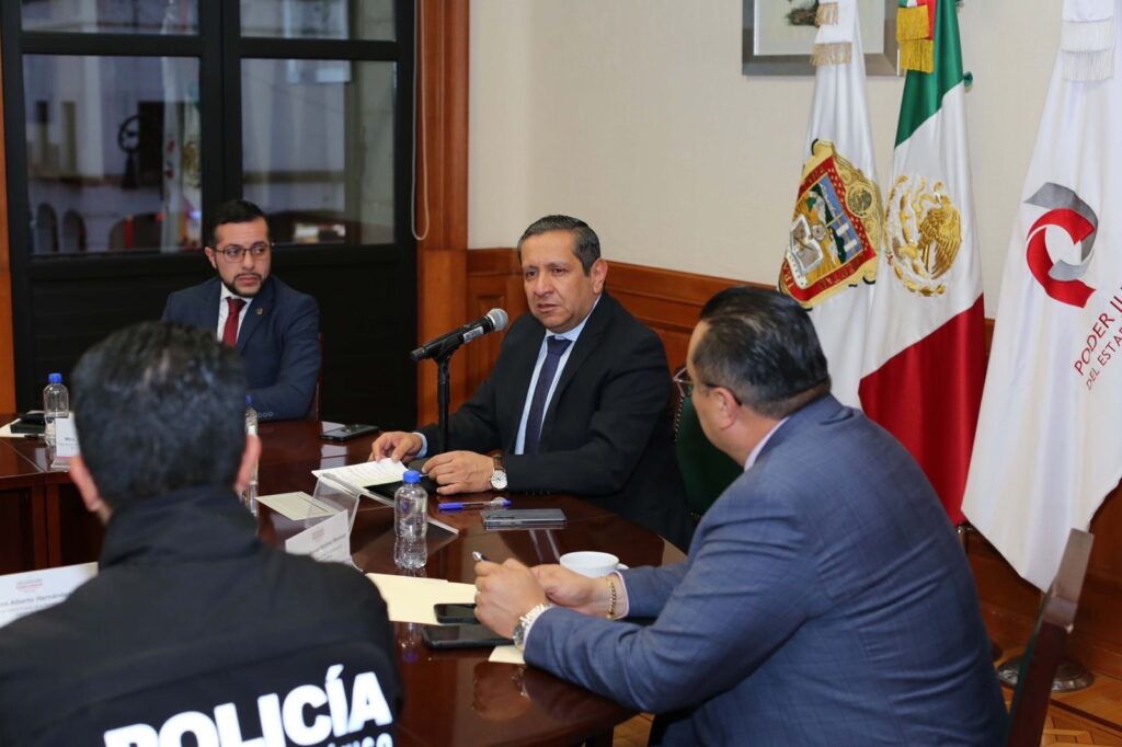 Durante la cuarta sesión de la Mesa de Diálogo y Coordinación Interinstitucional, impulsada por la Mesa de Paz que encabeza la Gobernadora Delfina Gómez Álvarez, el Presidente del Tribunal Superior de Justicia, Héctor Macedo García, encabezó los trabajos para definir el esquema operativo de este nuevo modelo judicial.
