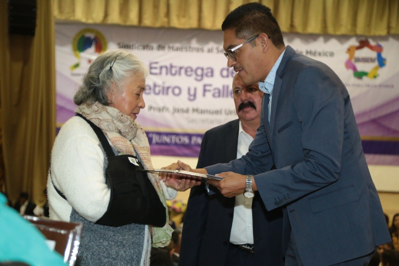 El Secretario General del Sindicato de Maestros al Servicio del Estado de México (SMSEM), José Manuel Uribe Navarrete, encabezó la ceremonia correspondiente a la 11ª Entrega del Fondo de Retiro y Fallecimiento, en la que se distribuyeron casi 11 millones de pesos entre 251 jubilados, inhabilitados o los beneficiarios de profesores fallecidos.