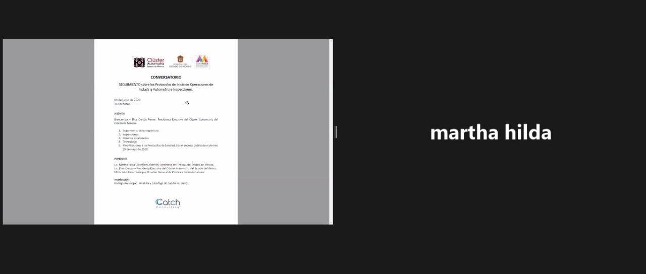 Al dar la bienvenida, la Presidenta ejecutiva del Clúster Automotriz, Elisa Crespo Ferrer, detalló que este tipo de encuentros permiten establecer mecanismos de diálogo que permiten resolver cada una de las circunstancias que se han presentado ante la emergencia sanitaria.