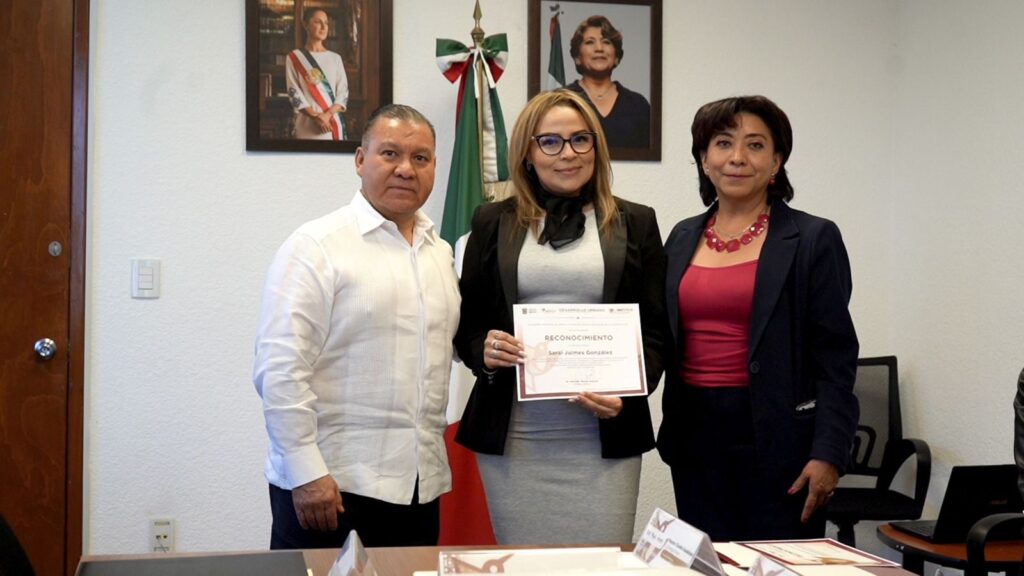 Claudia Guadalupe Lizárraga Rivera, Directora de Proyectos de Innovación, entregó los reconocimientos en representación de Alfonso Campuzano Ramírez, Director General de Innovación. La distinción fue recibida por Alejandro Tenorio Esquivel, titular del Imevis, quien agradeció el trabajo de Joel Rodríguez García, Jefe del Departamento de Informática, y de Sarai Jaimes González, Jefa de la Unidad de Información, Planeación, Programación y Evaluación (UIPPE), por su aportación tecnológica.