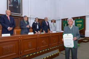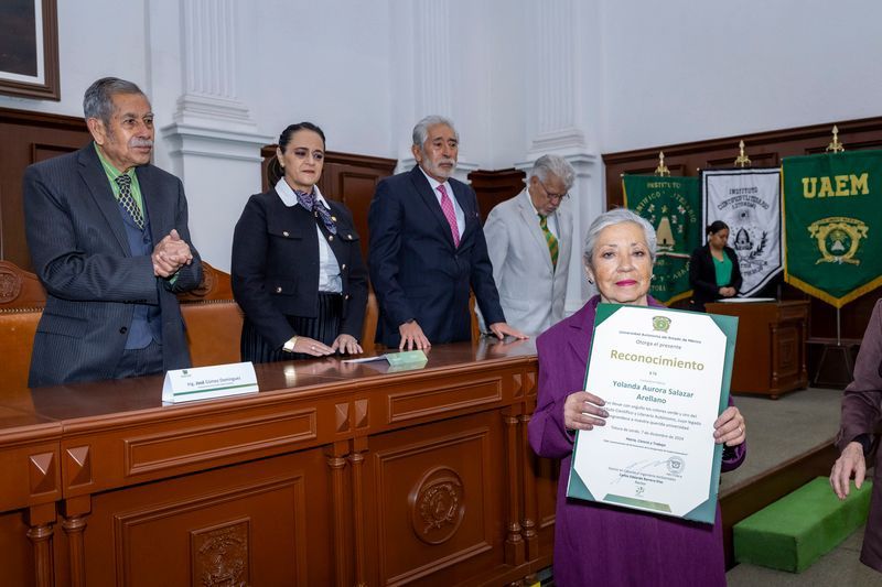 En representación del rector Carlos Eduardo Barrera Díaz, la secretaria de Difusión Cultural, María de las Mercedes Portilla Luja, entregó reconocimientos a destacados institutenses: María del Carmen Becerril Martínez, Yolanda Aurora Salazar Arellano, Atanasio Serrano López, José Gerardo Corzo Rodríguez, José Hernández González, Jorge Gutiérrez Torres y Tobías Serrano Gutiérrez. Estos galardonados han dejado una huella imborrable en la UAEMéx, contribuyendo al fortalecimiento de los valores y tradiciones que distinguen a esta institución.